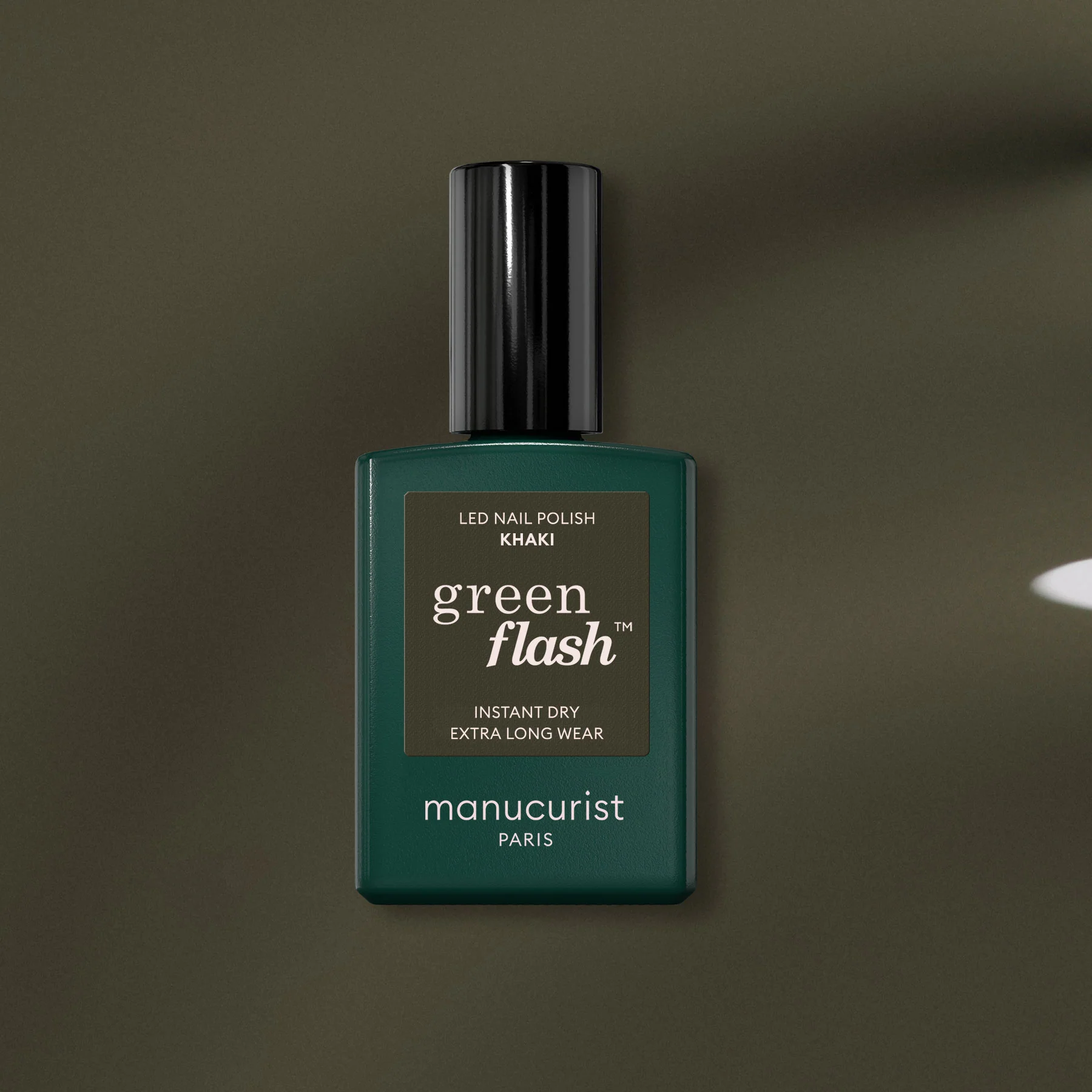Kifinomult szürkés alaptónusú khaki zöld Manucurist körömlakk: egy visszafogott, mégis karakteres árnyalat, amely a természetes minimalizmus erejével teszi modernné a megjelenést.